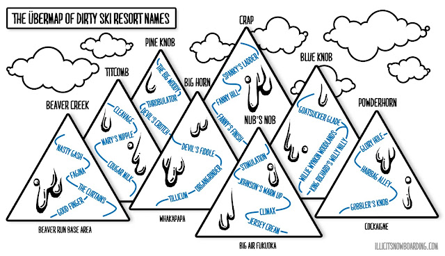 So, in what must be the best piece of event reporting from the BEO you're going to get, we brought all the names into one convenient format, and are proud to bring you - The Übermap of Dirty Ski Resort Names...